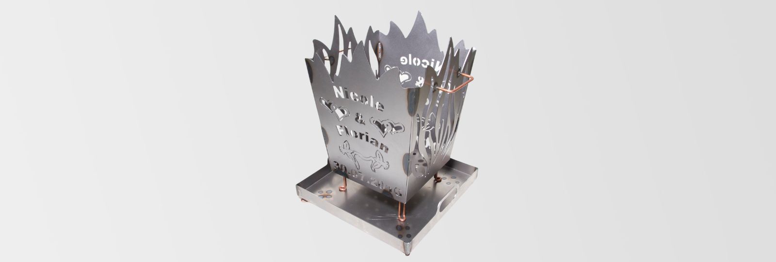 Egal ob als Geburtstags- oder Hochzeitsgeschenk oder für Sie selbst ganz persönlich - bei unserem individuellen Feuerkorb "Flamme" haben Sie die Möglichkeit, zwei oder sogar alle vier Seiten des Feuerkorbs ganz individuell zu gestalten.Namen, Hobbies, Symbole - hier findet alles seinen Platz.Bitte geben Sie bei Ihrer Bestellung an, wie viele Seiten des Feuerkorbs Sie individuell gestalten möchten. Nicht individuell gestaltete Seiten erhalten unser Standard-Flammen-Motiv.